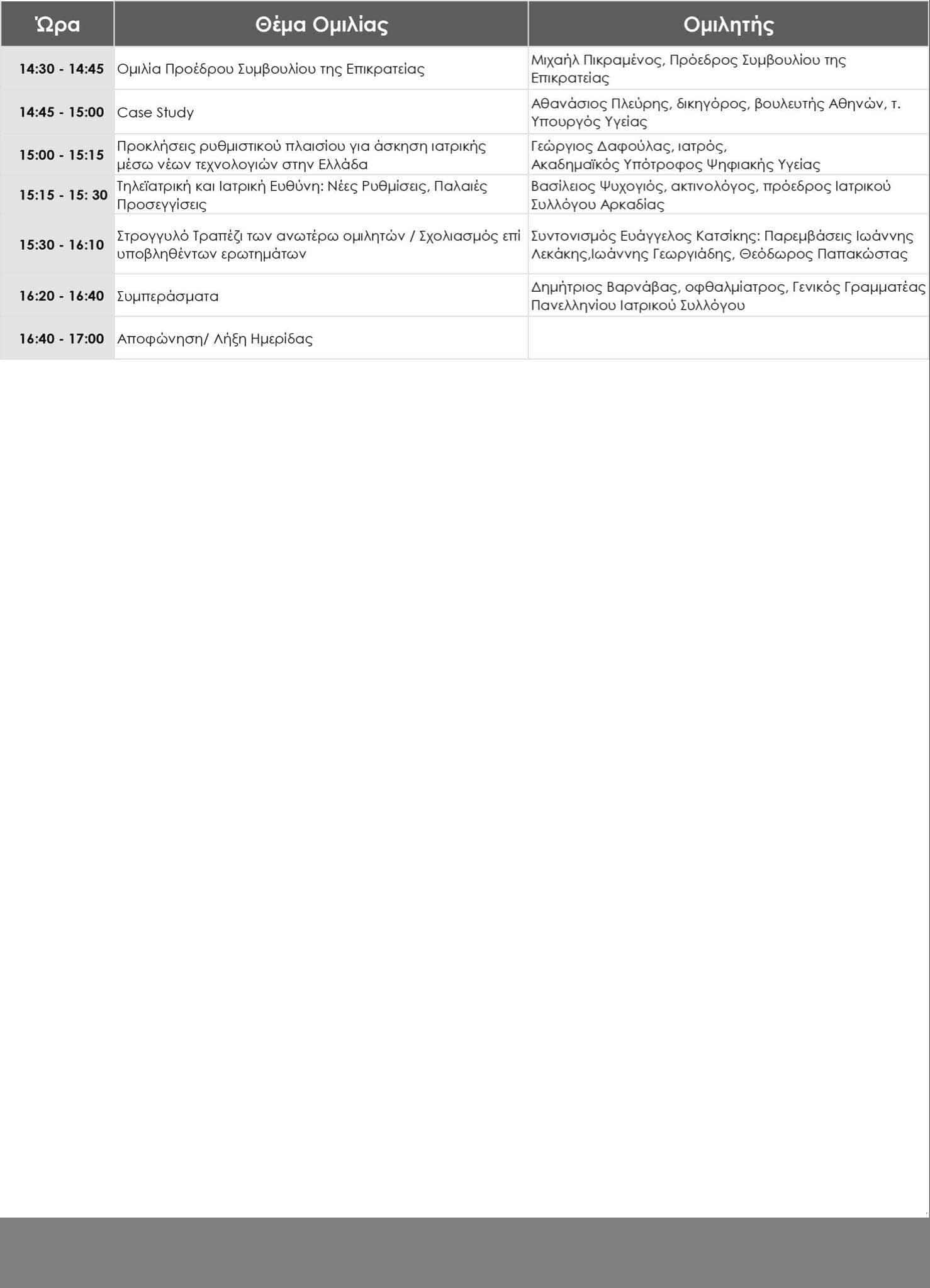 Οι παριστάμενοι θα συζητήσουν από τις καθυστερήσεις σε δικαστικές αποφάσεις έως την πρόκληση του AI στην ιατρική πράξη. Η ημερίδα φέρνει στο ίδιο τραπέζι ιατρούς, νομικούς, τεχνολόγους και διαμορφωτές πολιτικής, προκειμένου να ανταλλάξουν απόψεις για την Ιατρική Ευθύνη. Το πρόγραμμα έχει ώς εξής: