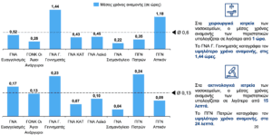Ο μέσος χρόνος εξυπηρέτησης ασθενών στα νοσοκομεία που έχουν ενταχθεί στο σύστημα με το “βραχιολάκι” φθάνει τις 4 ώρες. Ο μικρότερος εντοπίζεται στο Παίδων Αγία Σοφία, όπου απαιτείται 1 ώρα και 58 λεπτά, ενώ ο υψηλότερος στον Ευαγγελισμό σε 5 ώρες και 16 λεπτά.