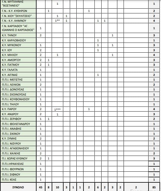 Σύμφωνα με τις διατάξεις του άρθρου 63 του ν. 5129/2024 (Α 124) εγκρίθηκε ο πίνακας μετακινήσεων 85 ιατρών το μήνα, για την κάλυψη έκτακτων υπηρεσιακών αναγκών των Φορέων Παροχής Υπηρεσιών Υγείας (Φ.Π.Υ.Υ.) της 2 ης Υ.Πε Πειραιώς και Αιγαίου, από την 01η Ιανουαρίου έως την 31η Δεκεμβρίου 2025. Αναλύεται στον πίνακα: