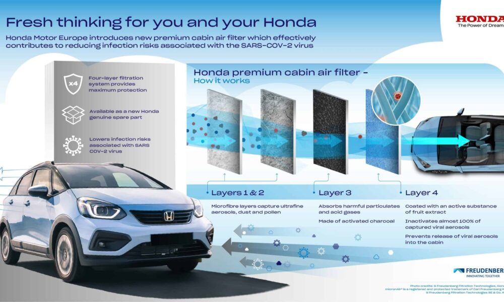 «Φρένο» στην μετάδοση βλαβερών μικροβίων, αλλεργιογόνων ουσιών ακόμα και ιών οι οποίοι που ευθύνονται για μολύνσεις, όπως είναι ο SARS CοV-2 βάζει φίλτρο καμπίνας. Συγκεκριμένα, πρόκειται για το νέο premium φίλτρο καμπίνας της Honda που συγκρατεί αποτελεσματικά ένα ιογενή αερολύματα.