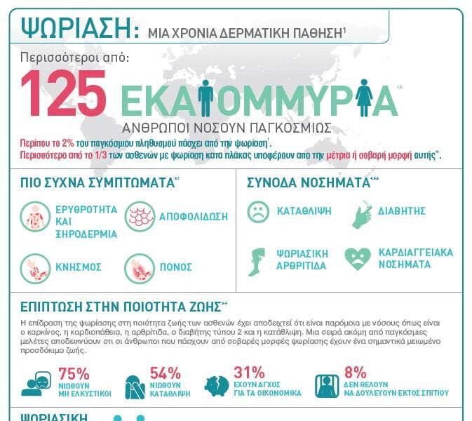 Η ψωρίαση είναι μια κοινή, μη μεταδοτική, αυτοάνοση νόσος που επηρεάζει μέχρι και το 3% του παγκόσμιου πληθυσμού. Η ψωρίαση κατά πλάκας είναι η πιο κοινή μορφή της νόσου και εμφανίζεται ως κόκκινες πλάκες που καλύπτονται με ένα αργυρόχρωμο στρώμα φολίδων (συσσωρευμένα νεκρά κύτταρα του δέρματος). Η ψωρίαση δεν είναι απλά ένα αισθητικό πρόβλημα, αλλά μια επίμονη, χρόνια (μακράς διάρκειας), και μερικές φορές οδυνηρή ασθένεια, η οποία μπορεί να επηρεάσει ακόμη και τις μικρότερες πτυχές της ζωής των ανθρώπων σε καθημερινή βάση. Μέχρι και το 30% των ασθενών με ψωρίαση έχουν ή θα αναπτύξουν ψωριασική αρθρίτιδα, στην οποία επηρεάζονται επίσης οι αρθρώσεις, προκαλώντας εξουθενωτικά συμπτώματα που περιλαμβάνουν πόνο, δυσκαμψία και μη αναστρέψιμη βλάβη των αρθρώσεων. Η ψωρίαση συνδέεται επίσης με άλλα σοβαρά προβλήματα υγείας, όπως ο διαβήτης, οι καρδιακές παθήσεις και η κατάθλιψη.