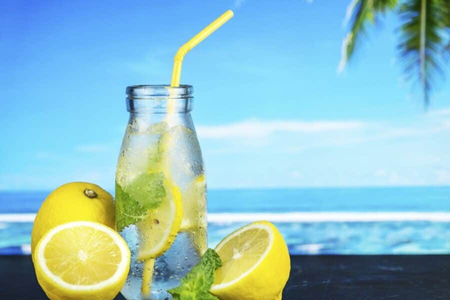 Κατά την παραμονή στην παραλία, τόσο ο δυνατός ήλιος όσο και το κολύμπι μπορεί να εντείνουν την αφυδάτωση. Σε τέτοιες συνθήκες, καταναλώστε περισσότερο νερό και υγρά απ’ ότι συνήθως, βάσει των αναγκών του οργανισμού σας. Βεβαιωθείτε ότι έχετε μαζί σας αρκετό νερό ή άλλα ενυδατικά ροφήματα όπως χυμούς, smoothies κ.α. Προσοχή στην κατανάλωση αλκοολούχων και καφεϊνούχων ροφημάτων ειδικά κατά την παραμονή στην παραλία, καθώς είναι διουρητικά και μπορεί να εντείνουν την αφυδάτωση. Τέλος, μπορείτε σαν σνακ να επιλέξετε τρόφιμα με μεγάλη περιεκτικότητα σε νερό, όπως μπαστουνάκια αγγουριού με τυρί κρέμα, κομμένο πεπόνι ή καρπούζι, σαλάτα με μαρούλι, ντομάτα κ.α.