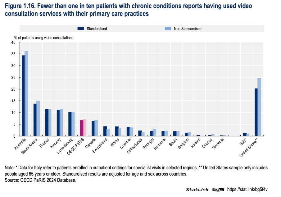 Η ψηφιακή τεχνολογία δεν αξιοποιείται πλήρως στην υγειονομική περίθαλψη. Μόνο το 7% των ασθενών με χρόνιες παθήσεις αναφέρουν ότι έχουν χρησιμοποιήσει βίντεο-συμβουλευτική στην πρωτοβάθμια περίθαλψη και το 17% αναφέρουν ότι έχουν πρόσβαση στον ιατρικό φάκελο της πρωτοβάθμιας περίθαλψης μέσω διαδικτύου. Επιπλέον, μόνο το 43% των ασθενών με χαμηλό μορφωτικό επίπεδο συμφωνεί ότι ο δικτυακός τόπος του παρόχου πρωτοβάθμιας περίθαλψης είναι εύχρηστος.