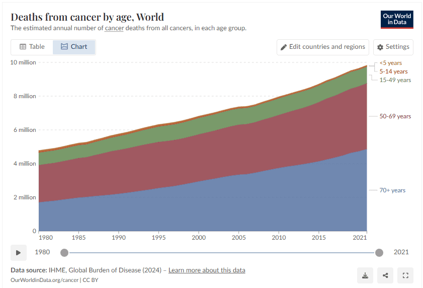 Τα τελευταία 40 χρόνια, ο αριθμός των ανθρώπων που πεθαίνουν από καρκίνο παγκοσμίως έχει διπλασιαστεί. Η εικόνα αυτή μπορεί να δημιουργεί την εντύπωση ότι η ανθρωπότητα χάνει τη μάχη με τη νόσο. Ωστόσο, τα δεδομένα δείχνουν πως η πραγματικότητα είναι πολύ πιο σύνθετη — και, σε αρκετά σημεία, αισιόδοξη.