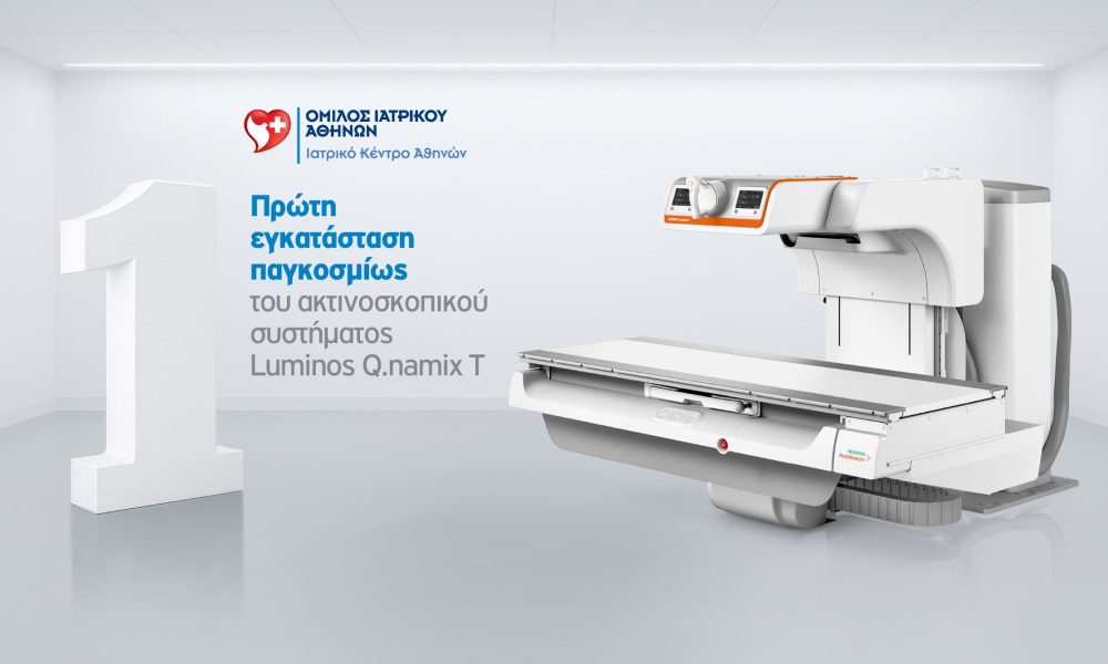 Ο Όμιλος Ιατρικού Αθηνών, πάντα ένα βήμα μπροστά στις εξελίξεις της ιατρικής τεχνολογίας, ανακοινώνει την πρώτη παγκοσμίως εγκατάσταση της νέας γενιάς ακτινοσκοπικού συστήματος Luminos Q.namix T, καθώς και την πρώτη εγκατάσταση στη Νότια Ευρώπη του ακτινοσκοπικού συστήματος Q.namix R της Siemens Healthineers στο Ιατρικό Κέντρο Αθηνών.