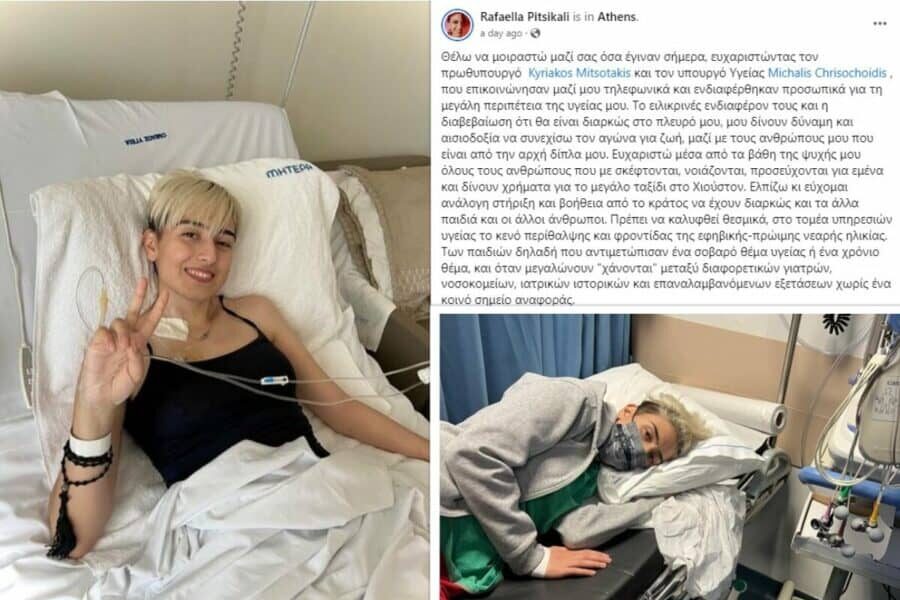 Με παρέμβαση του πρωθυπουργού και του υπουργού Υγείας 19χρονη καρκινοπαθής με σπάνια μορφή της νόσου κατάφερε να βρει λύση στο πρόβλημά της. Σε ανάρτησή της η Ραφαέλα Πιτσικάλη είχε περιγράψει το αδιέξοδο που είχε περιέλθει, καθώς με την ενηλικίωσή της θα έπρεπε να εγκαταλείψει το παιδιατρικό ογκολογικό νοσοκομείο, τονίζοντας ότι πρόκειται για ένα κενό στην περίθαλψη και φροντίδα παιδιών με καρκίνο που ενηλικιώνονται.