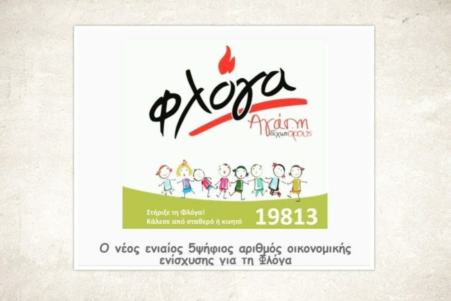 Στην διάθεση του κοινού είναι από σήμερα 9 Απριλίου ο νέος ενιαίος πενταψήφιος αριθμός οικονομικής ενίσχυσης του Συλλόγου Γονιών παιδιών με νεοπλασματική ασθένεια «ΦΛΟΓΑ» προκειμένου να συνεχίσει τις δράσεις της για κάθε παιδί που νοσεί από καρκίνο σε όλη την Ελλάδα.
