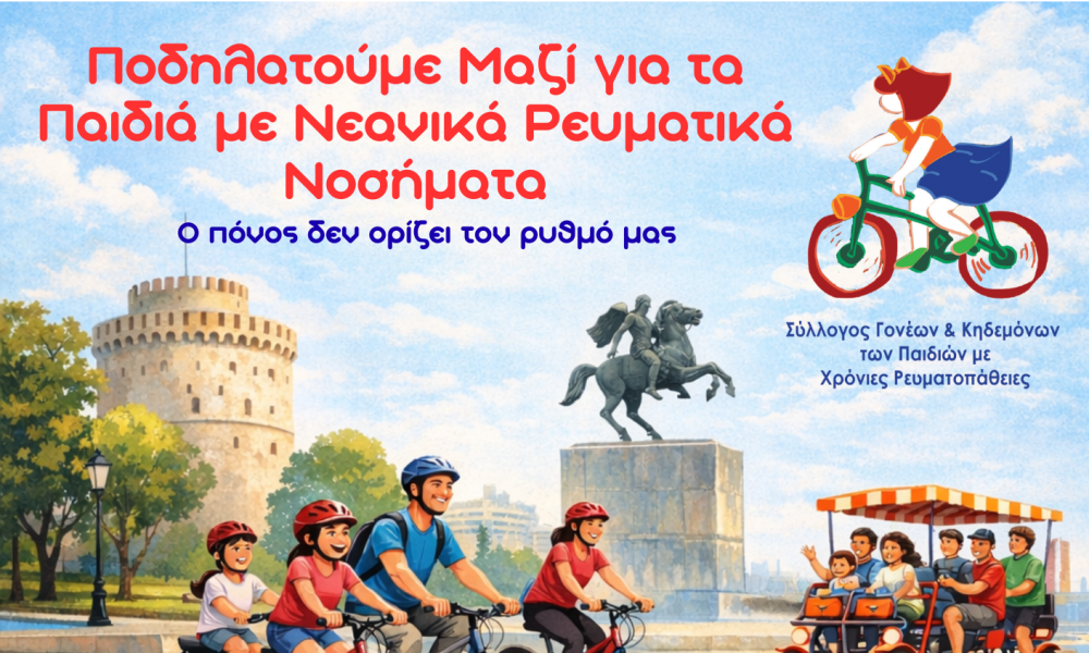 Με αφορμή την Παγκόσμια Ημέρα Νεανικών Ρευματικών Νοσημάτων στις 18 Μαρτίου, ο Σύλλογος Γονέων & Κηδεμόνων Παιδιών με Χρόνιες Ρευματοπάθειες διοργανώνει συμβολική ποδηλατοδρομία ευαισθητοποίησης στη Θεσσαλονίκη.