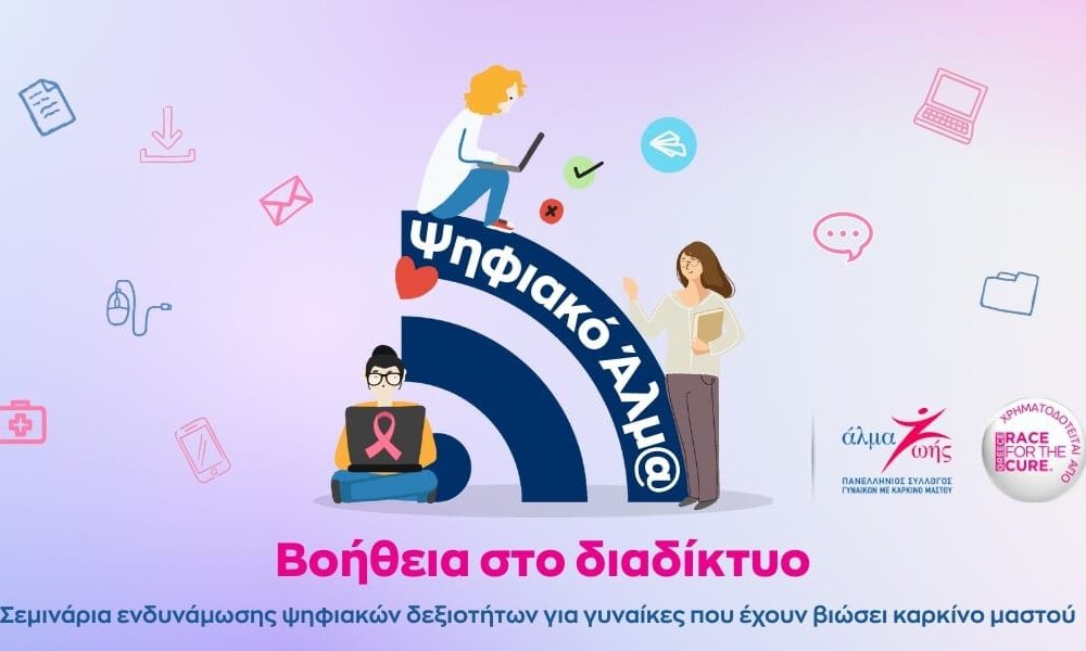Ο Πανελλήνιος Σύλλογος Γυναικών με Καρκίνο Μαστού Άλμα Ζωής ανακοινώνει την έναρξη του νέου προγράμματος Ψηφιακό Άλμα Βοήθεια στο Διαδίκτυο, που απευθύνεται σε γυναίκες με εμπειρία καρκίνου μαστού οι οποίες αντιμετωπίζουν δυσκολίες στη χρήση ψηφιακών τεχνολογιών. Το πρόγραμμα περιλαμβάνει τρία αυτοτελή σεμινάρια που στοχεύουν στην ανάπτυξη και ενίσχυση βασικών και προχωρημένων ψηφιακών δεξιοτήτων, απαραίτητων για τη διαχείριση θεμάτων υγείας και την πρόσβαση σε ηλεκτρονικές υπηρεσίες του Συστήματος Υγείας.