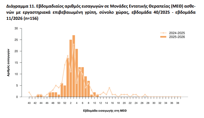 Την ίδια εβδομάδα καταγράφηκε ένα νέο σοβαρό κρούσμα με νοσηλεία σε ΜΕΘ και ένας θάνατος από εργαστηριακά επιβεβαιωμένη γρίπη.