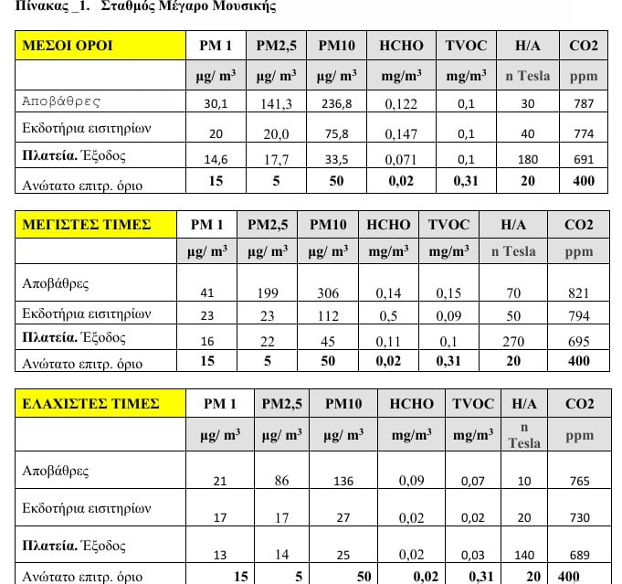 Ανησυχία προκαλούν τα αποτελέσματα επιτόπιων μετρήσεων ατμοσφαιρικής ρύπανσης σε τρεις σταθμούς του Μετρό της Αθήνας. Καταγράφηκαν υπερβάσεις των ανώτατων επιτρεπτών ορίων σε όλα τα καταγεγραμμένα επίπεδα ρύπων.