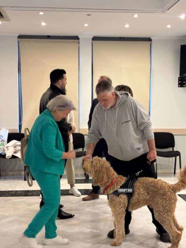 Μετά το πέρας των ομιλιών, οι συμμετέχοντες χωρίστηκαν σε δύο ομάδες, προκειμένου να βιώσουν από κοντά την εμπειρία της θεραπευτικής αλληλεπίδρασης με τους σκύλους. Στο πρώτο γκρουπ, η Κωνσταντίνα Θανάσουλα παρουσίασε τον Βαγγέλη, τον έμπειρο σκύλο θεραπείας με σπουδαία πορεία σε νοσοκομεία και δομές υγείας. Στο δεύτερο γκρουπ, ο Κώστας Κοίλιας παρουσίασε τους ειδικά εκπαιδευμένους σκύλους θεραπείας, τον Όλυμποκαι τον Μορφέα. Το κοινό είχε την ευκαιρία να θέσει ερωτήματα στους ειδικούς, να παρατηρήσει από κοντά τη συμπεριφορά των σκύλων θεραπείας και να μάθει περισσότερα για τον θετικό αντίκτυπο που έχουν στους ασθενείς.