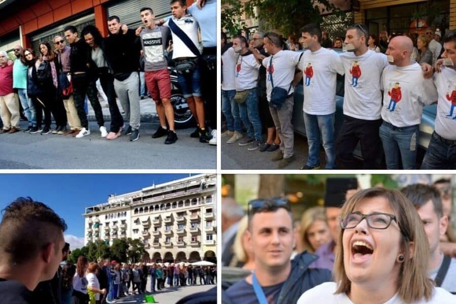 Πλήθος κόσμου συγκεντρώθηκε στην Αθήνα μπροστά από το Υπουργείο Υγείας όπου οι παριστάμενοι σχημάτισαν κύκλο. Η ομάδα κρουστών έδωσε σήμα για να πιαστούν σφιχτά από τους ώμους , ενώ μια ομάδα νεαρών φίμωσε το στόμα της.