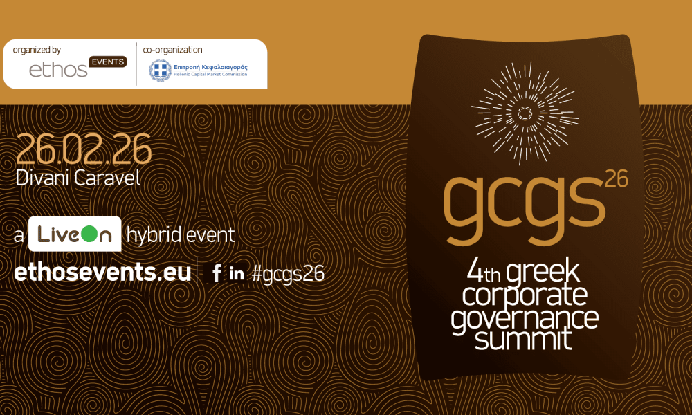 Στις νέες προκλήσεις, αλλά και στις ευκαιρίες, εστιάζεται το 4o Greek Corporate Governance Summit – #gcgs26, που διοργανώνει η ethosEVENTS, την Πέμπτη 26 Φεβρουαρίου 2026, με την υποστήριξη της Επιτροπής Κεφαλαιαγοράς. Η συμμετοχή στο συνέδριο είναι εφικτή με φυσική παρουσία στο ξενοδοχείο Divani Caravel και online μέσα από την πλατφόρμα LiveOn Events+.