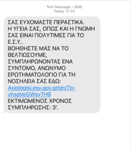 Το SMS θα έχει ισχύ για 7 ημέρες και η συμπλήρωση του ερωτηματολογίου χρειάζεται κατά μέσο όρο 3 λεπτά.