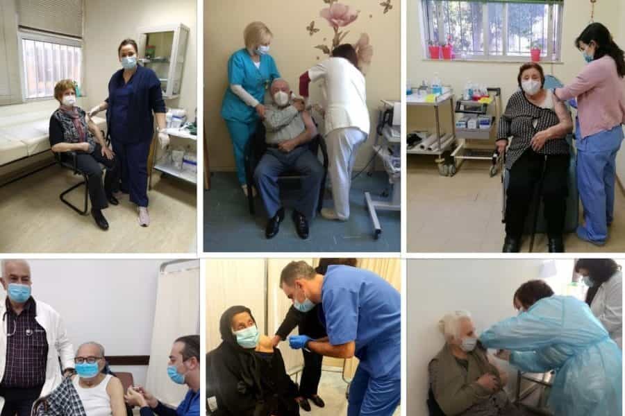 Αρκετοί από τους υπερήλικες φορώντας τις μάσκες, κρατώντας σε κάποιες περιπτώσεις τα μπαστούνια τους ή τα χέρια των δικών τους φωτογραφήθηκαν την ώρα του εμβολιασμού και την στιγμή που έκαναν σήμα ότι όλα πάνε καλά. Στο πλευρό τους βρίσκεται το ιατρονοσηλευτικό προσωπικό των Κέντρων Υγείας που με σεβασμό και κατανόηση φροντίζει να γίνεται πιο εύκολη η διαδικασία για τους ηλικιωμένους.