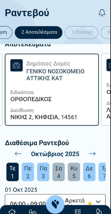 Μια σημαντική εξέλιξη σημειώθηκεστον τομέα της ψηφιοποίησης των υπηρεσιών υγείας, με την ένταξη του Νοσοκομείου ΚΑΤ στην ηλεκτρονική πλατφόρμα My Health App, όπως ανακοίνωσε ο υπουργός Υγείας. Η πρωτοπορία τοου νοσοκομείου θα επιτρέπει στους πολίτες να κλείνουν τα ραντεβού τους στο ΚΑΤ εύκολα και γρήγορα μέσω της εφαρμογής, καθώς και του ιστότοπου finddoctor.gov.gr, με μελλοντική επέκταση στο 1566.