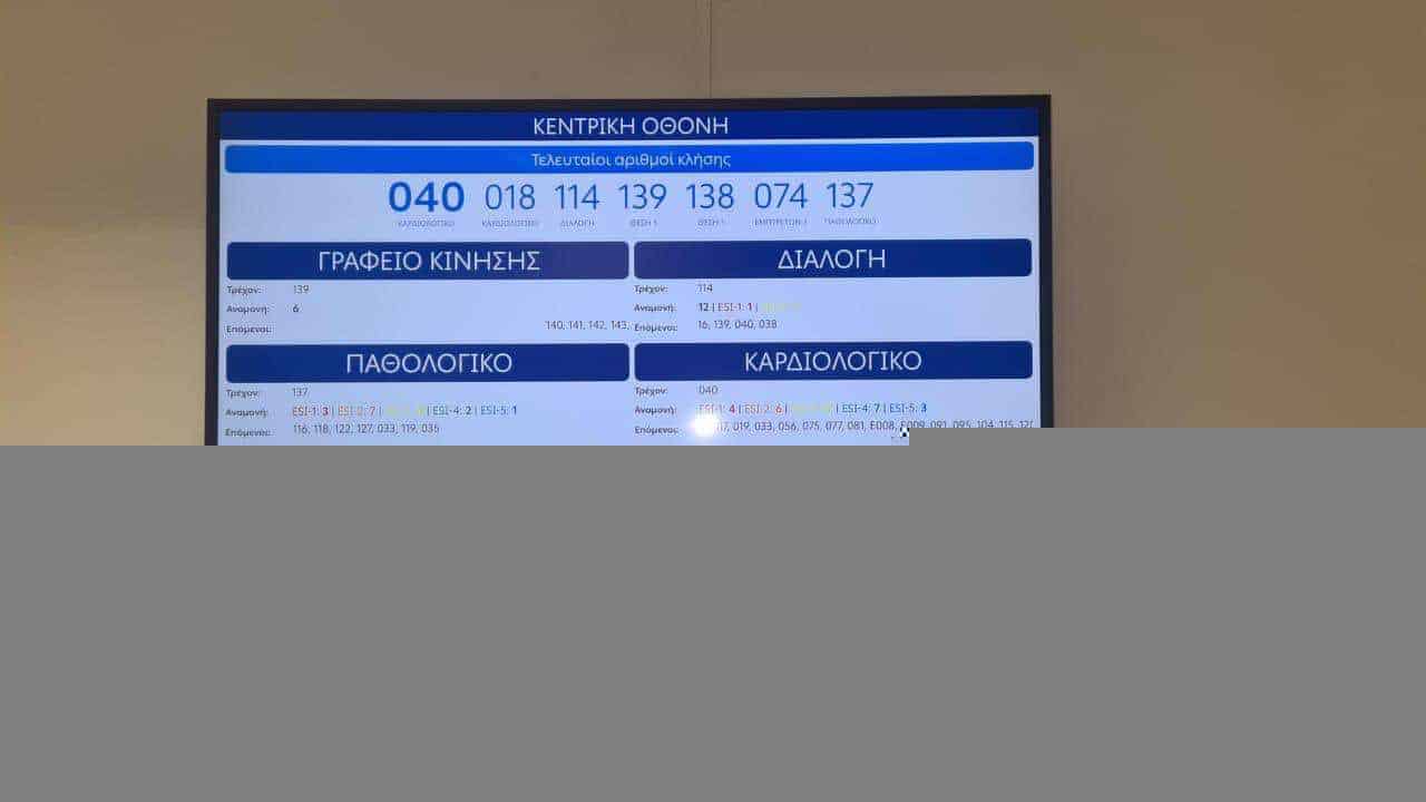 Σε όλη τη διάρκεια, η προβολή του αριθμού του εισιτηρίου γίνεται σε οθόνες που βρίσκονται σε κεντρικά σημεία, όπως στους διαδρόμους, έξω από τα ιατρεία ή στις κεντρικές οθόνες των χώρων αναμονής.