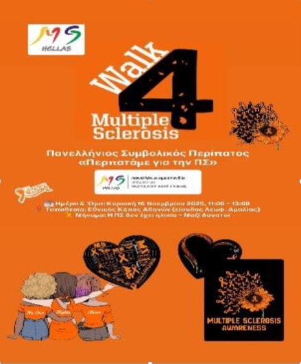 Αθήνας. Με σύνθημα «Η Πολλαπλή Σκλήρυνση δεν έχει ηλικία – Μαζί Δυνατοί!», ο περίπατος αποτελεί πανελλαδική πρωτοβουλία ευαισθητοποίησης για τη νόσο, αναδεικνύοντας τη σημασία της υποστήριξης των ατόμων που ζουν με Πολλαπλή Σκλήρυνση. Η δράση τελεί υπό την αιγίδα του Δήμου Αθηναίων και πραγματοποιείται με την υποστήριξη των Merck SA, SimasiaAI, Μητροπολιτικού Κολλεγίου και Attica Group.