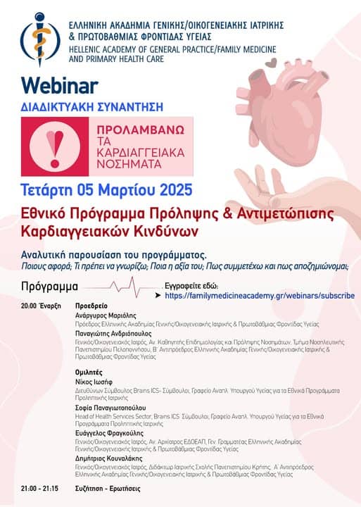 webinarΕθνικό πρόγραμμαΕλληνική Ακαδημία Γενικής/Οικογενειακής Ιατρικής & ΠΦΥκαρδιαγγειακά νοσήματα