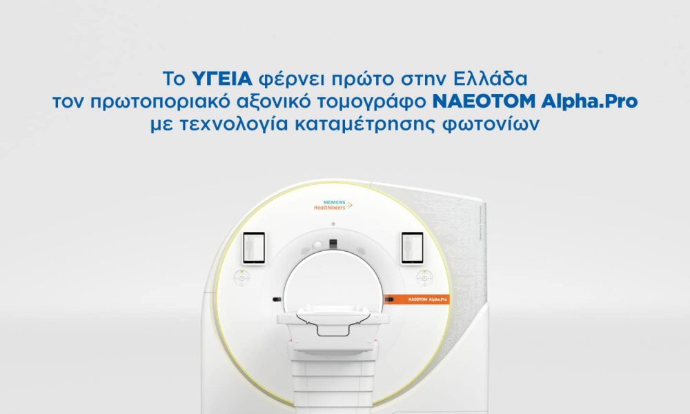 Το ΥΓΕΙΑ πραγματοποιεί ένα ακόμη καθοριστικό βήμα για την εξέλιξη της διαγνωστικής απεικόνισης, αποκτώντας τον αξονικό τομογράφο νέας γενιάς τεχνολογίας μέτρησης φωτονίων, τον NAEOTOM Alpha.Pro της Siemens Healthineers. Η προσθήκη αυτή ενισχύει σημαντικά τα Απεικονιστικά Τμήματα του νοσοκομείου και εισάγει στη χώρα μας μια τεχνολογία που αλλάζει τα δεδομένα στην αξονική τομογραφία.