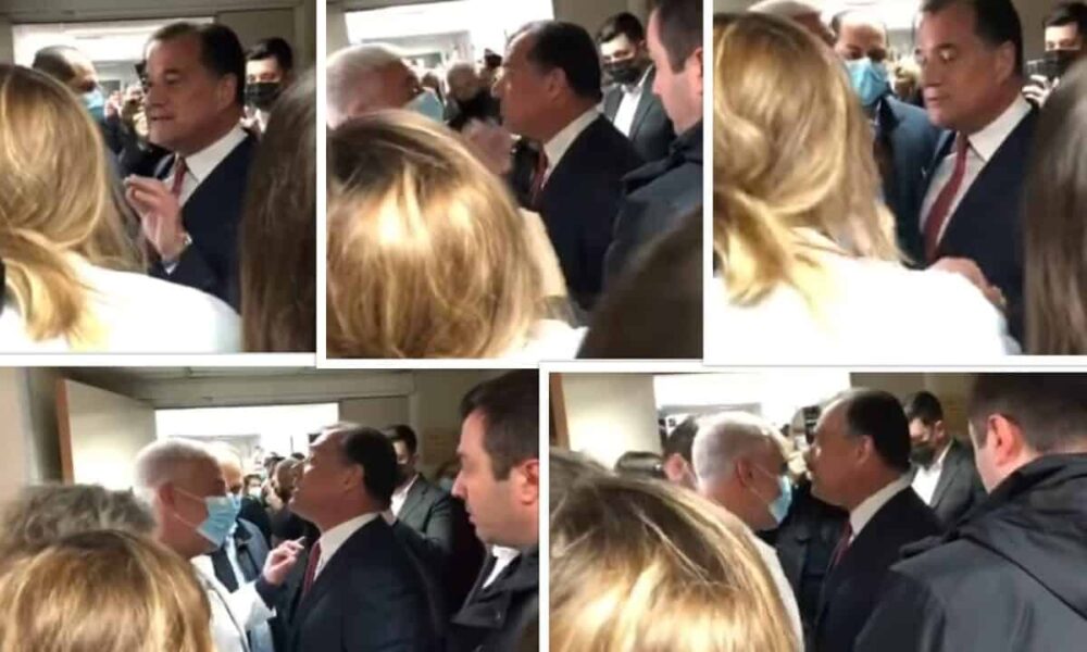 Απευθυνόμενος σε συγκεκριμένο γιατρό, ο υπουργός ακούγεται να ανταπαντά «άσε τον κομμουνισμό απ’ έξω, φοράς άσπρη μπλούζα». Τα πνεύματα οξύνθηκαν με τον γιατρό να λέει «κομμουνιστής είμαι, ΑΝΤΑΡΣΥΑ κιόλας, ακόμη χειρότερα» και τον υπουργό να υποστηρίζει «ακόμη χειρότερα, το ξέρω, το κατάλαβα ότι είσαι κομμουνιστής, φαίνεται. Εδώ όμως είμαστε Νέα Δημοκρατία, εμάς ψήφισε ο λαός όχι εσένα. Εμάς, όχι εσένα! Και επαναλαμβάνω σήμερα ήρθα για κοπή πίτας, να σταματήσετε τα κομμουνιστικά σε εμένα».